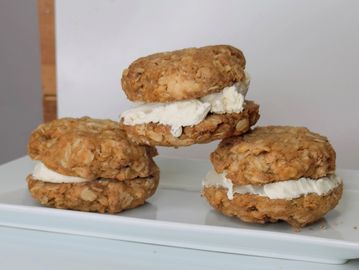 Oatmeal cream cookies filled with a vanilla buttercream.