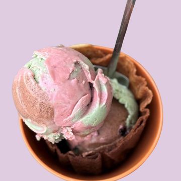 A nostalgic Italian classic — chocolate, cherry, and pistachio ice creams, each made from our silky cashew, almond and pistachio base and swirled together in one beautiful scoop. Creamy, elegant, and full of childhood-restaurant memories All Gluten, Dairy, peanut, soy, egg, dye free