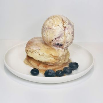 Blueberry pancakes taste just like you would imagine. This almond and oat-based ice cream is delicious. Blueberries swirled through out. With a maple hue.