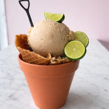 Key lime pie made with our coconut base, Squeezed fresh key limes, graham crackers. Tart but refreshing. All Gluten, Dairy, egg, peanut, dye free. This is nut free