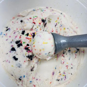 This is made cashew vanilla base, along with gluten free Oreo's, sugar cookies and sprinkles. This is a kid and adult favorite!