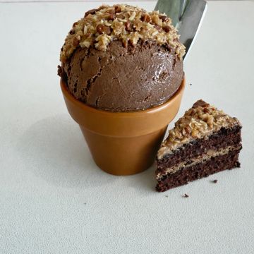 This creamy delicious ice cream was inspired by the cake that is so delicious with coconut, pecan caramel in our signature cashew base. All Gluten, Dairy, peanut, soy, egg, dye free